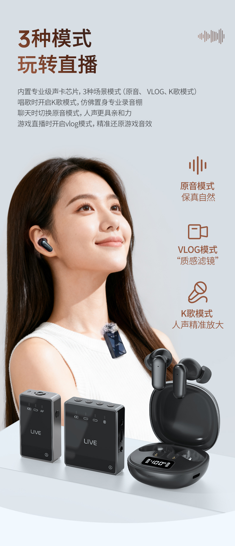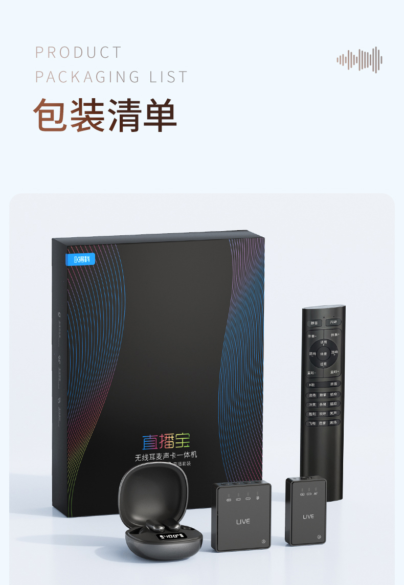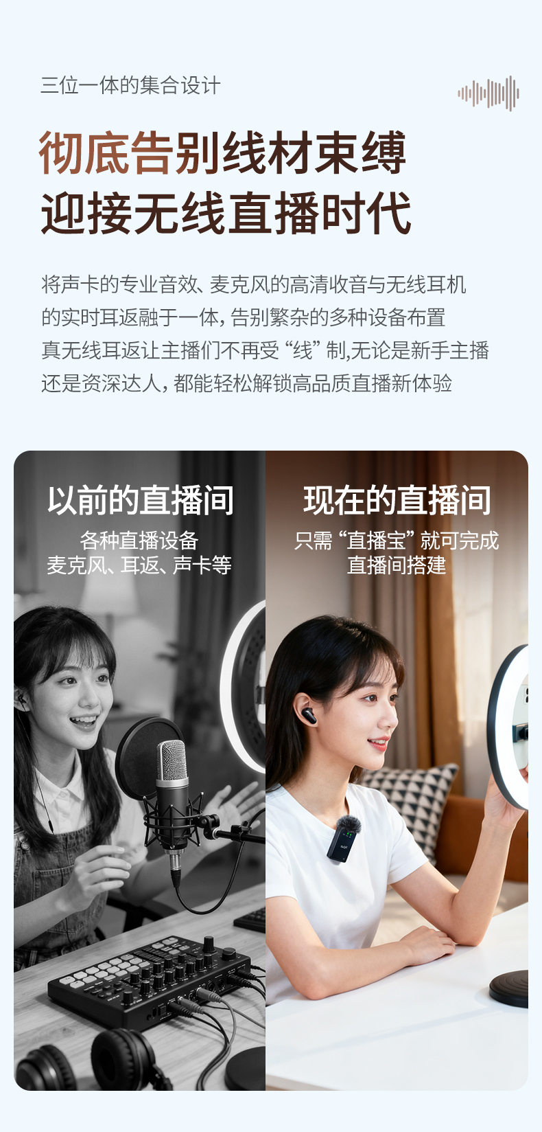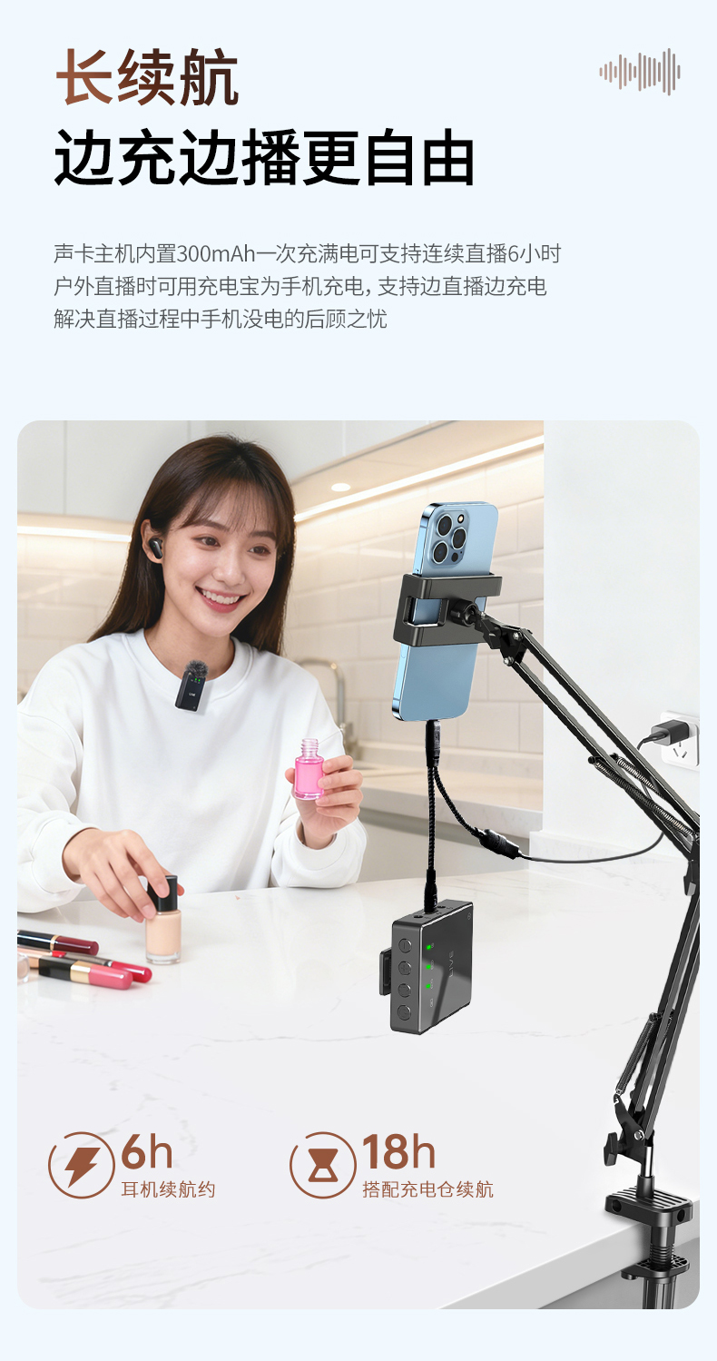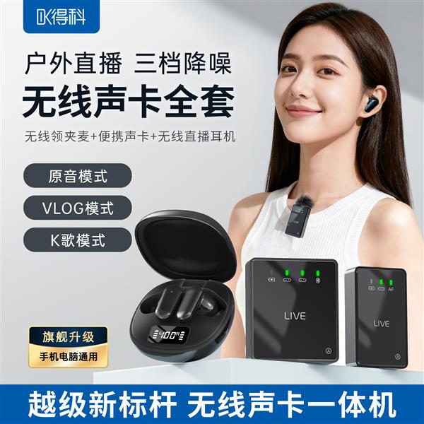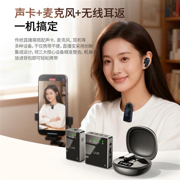 无线监听耳机、无线领夹麦、手机直播声卡,网红直播设备,直播麦克风