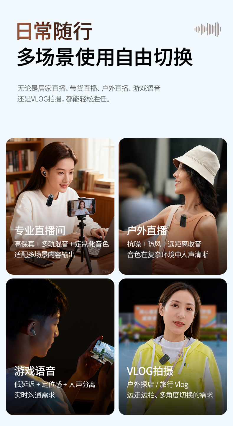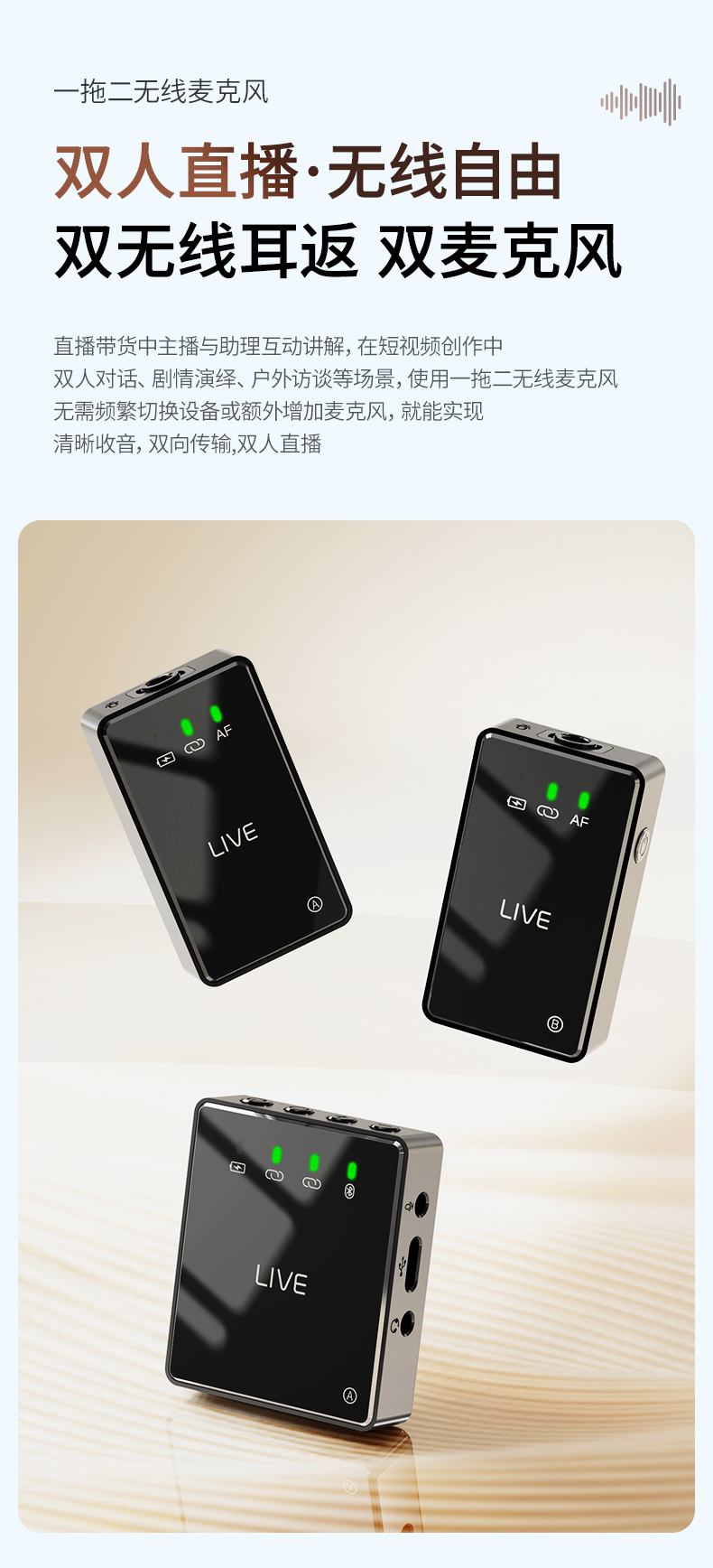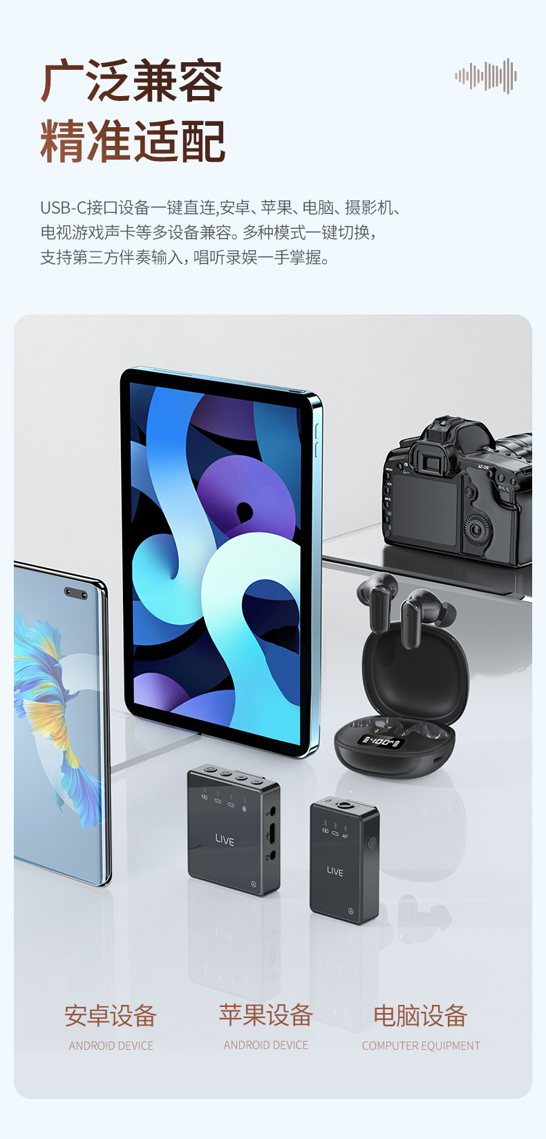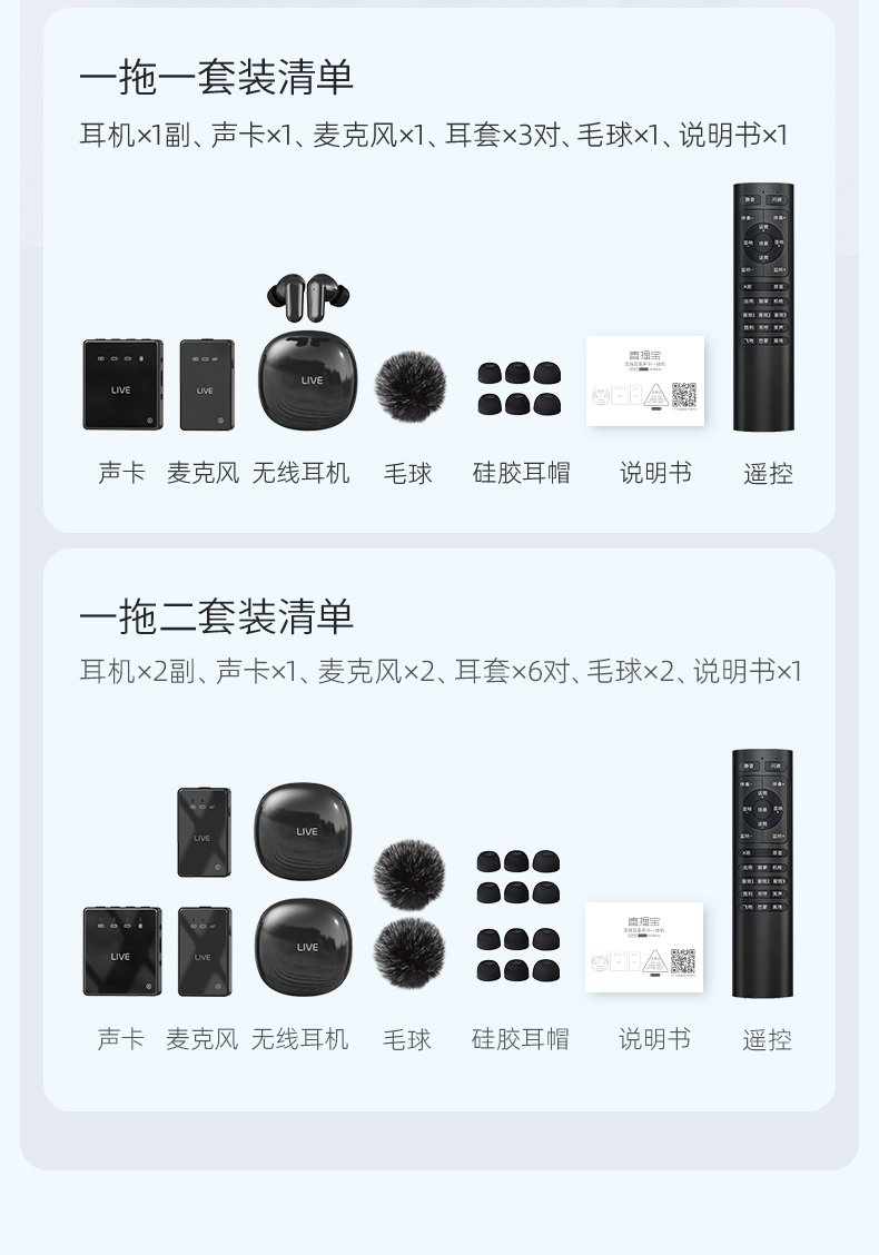无线监听耳机、无线领夹麦、手机直播声卡,网红直播设备,直播麦克风